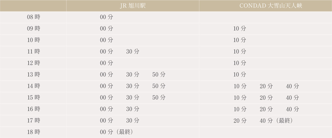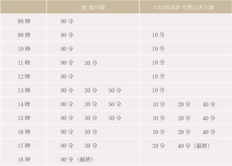 また、当ホテル専用のシャトルバスもご利用いただけます。時刻表は[こちら]からご確認ください。 - 旭川空港からお越しのお客様